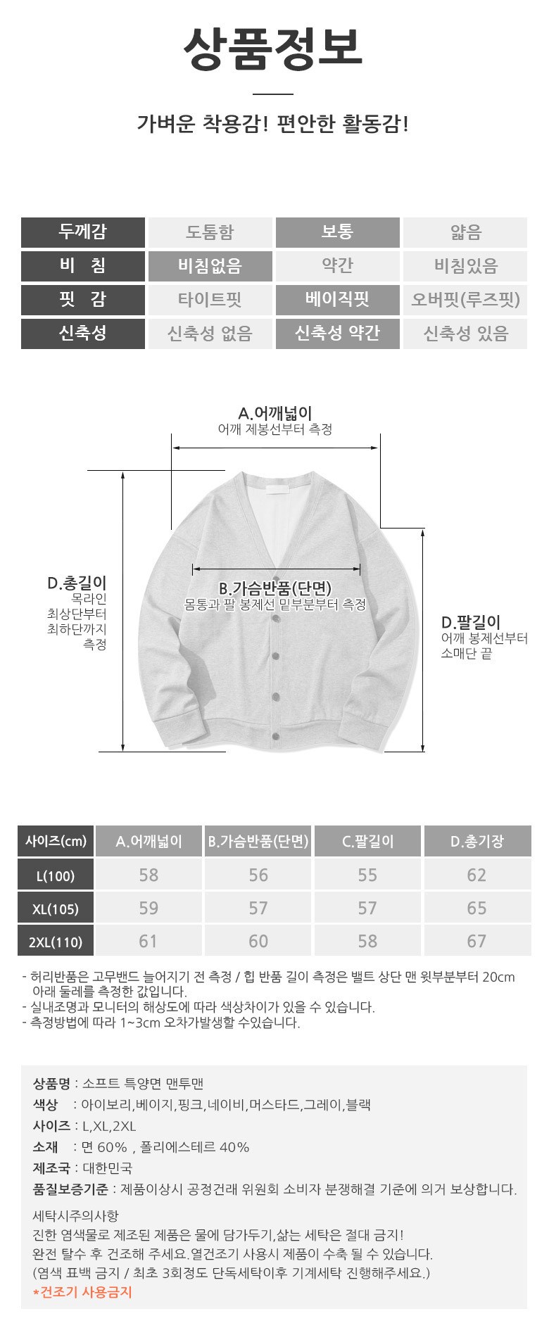 일루소 소프트 특양면 맨투맨 가디건